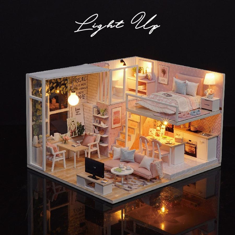 Amazon Moin Moin ドールハウス ミニチュア 手作りキット セット うさぎと暮らす 北欧 インテリア の デザイナーズ ルーム 小型 初心者向け Ledライト アクリルケース 制作ツール 付属 プラモデル 通販
